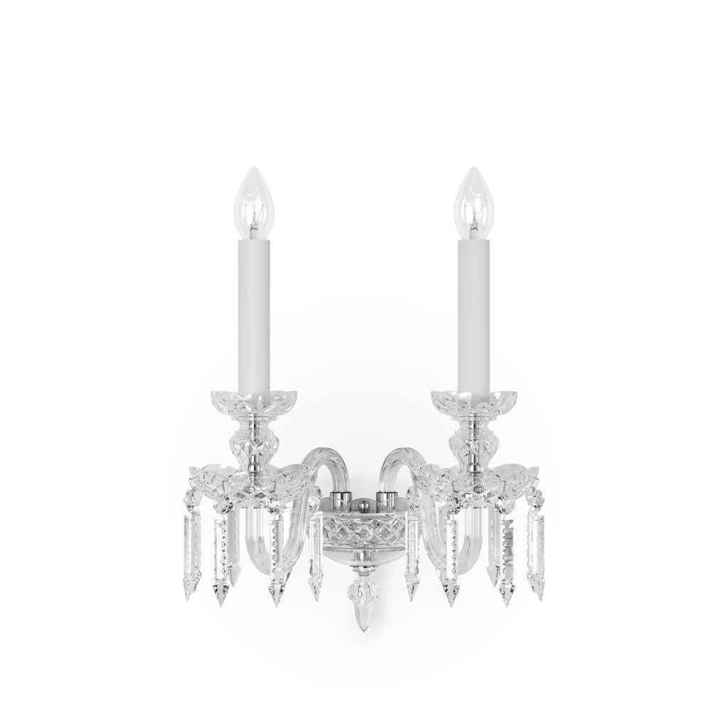 The exquisite way in which each crystal on Rudolf is cut leads to a glittering light piece, rich in detail and perfect for examining up close. The Rudolf wall sconce is decorated with prisms and available with either two or three candles.